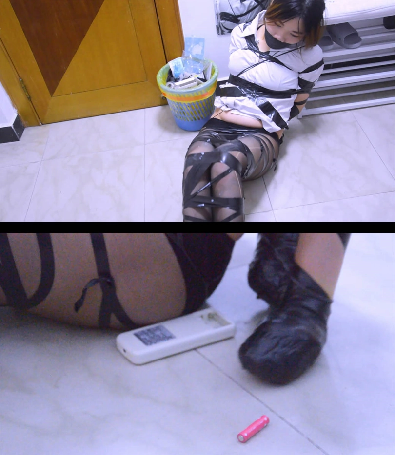没一会胶带又恢复了捆绑,更可恶的是胶带拘束变的更多,更严密了,女警简直都要绝望了。