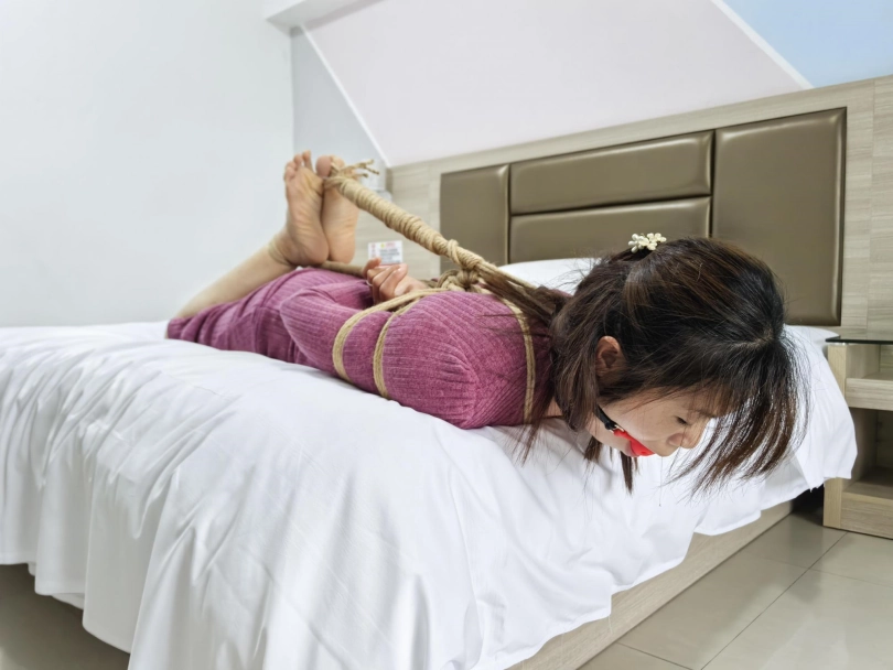 绑好之后直接让她口水流烟灰缸里,然后就出门抽烟聊天,给她自己在床上挣扎流口水,流了半缸口水挺不错,看着都有点搭小帐篷。