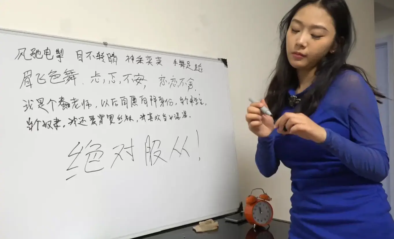 玩腻后的老师,惩罚学生,并训练她的跪姿与站姿。