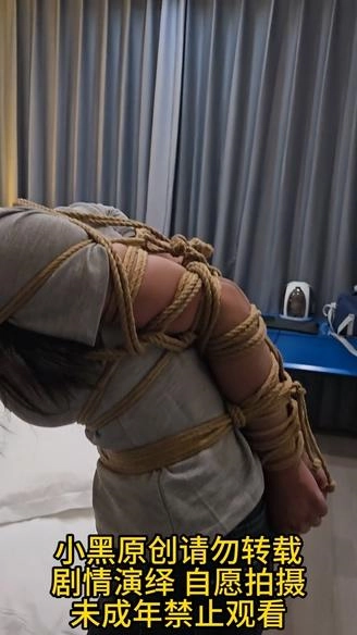 【小黑】超紧直臂捆绑,马具口球堵嘴,她连呼吸都很难受,喘着粗气,又说不了话,放置挣扎的很激烈。