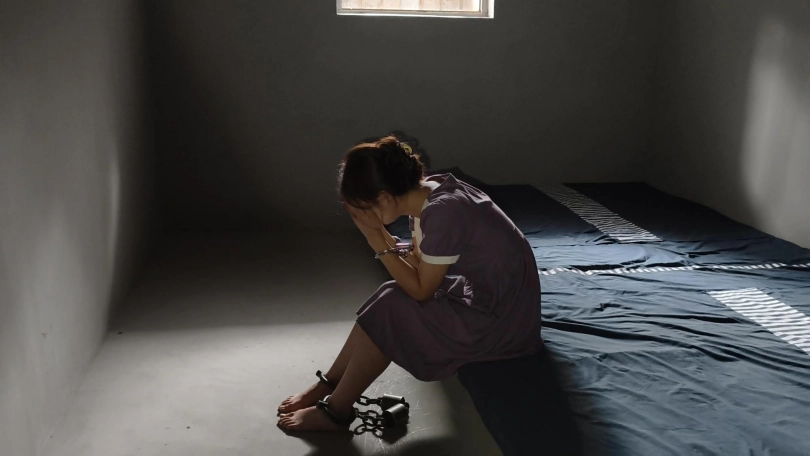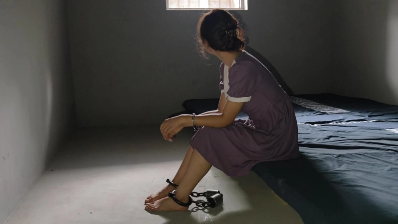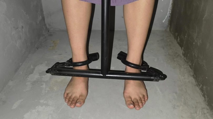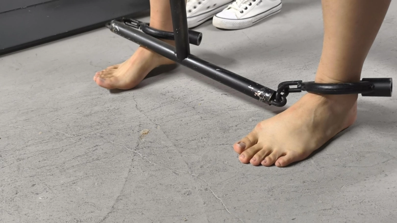 【忘忧社】新模特以墨因受不了上司长期骚扰,失手杀了人,被抓回来后拒不交代,被带工字铐,关小黑屋,后来终于受不了坦白从宽,换上了码法脚镣。
