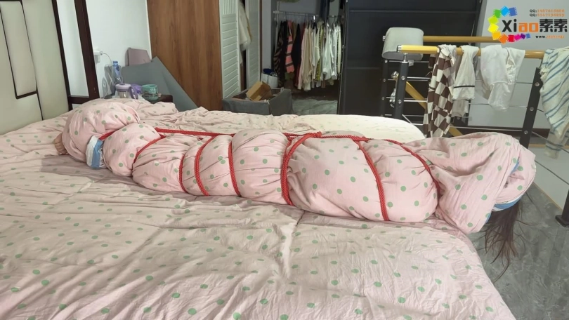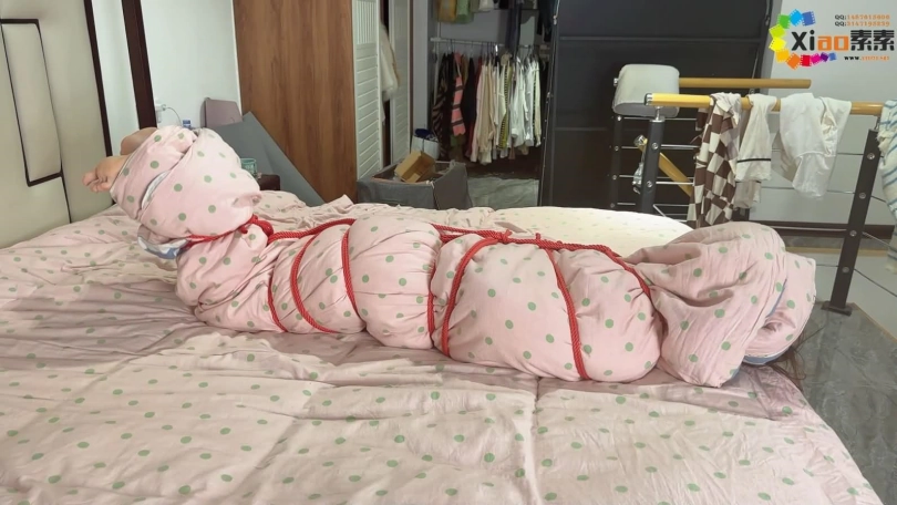 李曼是个独居的女孩,这一天回到家里,刚打开家门就被一直跟踪暗恋他的邻居迷晕,这厮为了得到李曼,居然给她喝下了“听话水”,被药物控制的李曼乖乖的被闯入的家伙摆布,被用绳子绑起来还不够,又被棉被包裹了起来,像一个可爱的蚕宝宝。
