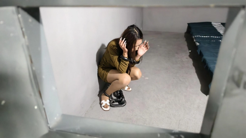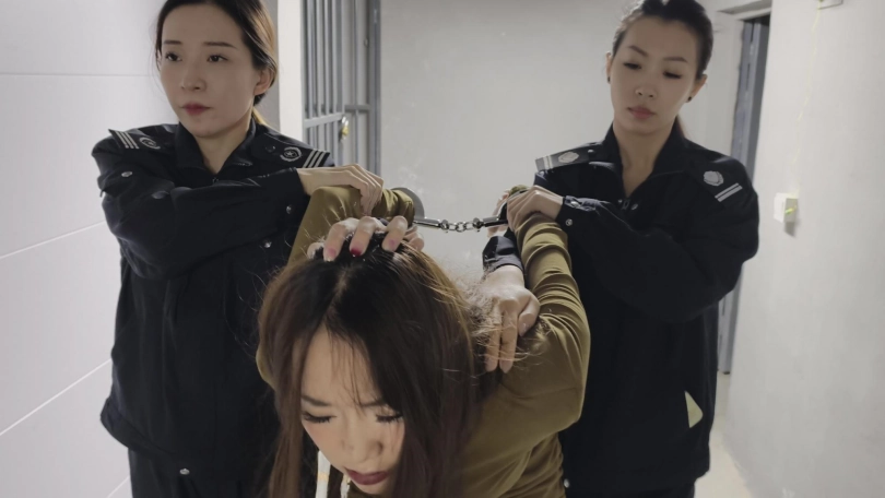 【忘忧社】驴驴回归,饰演电诈女犯被抓,带其审讯,指认现场,带连体镣铐重镣,钉死镣死铐,重脚镣,死拷最后被判死刑,五花大绑执行枪决。