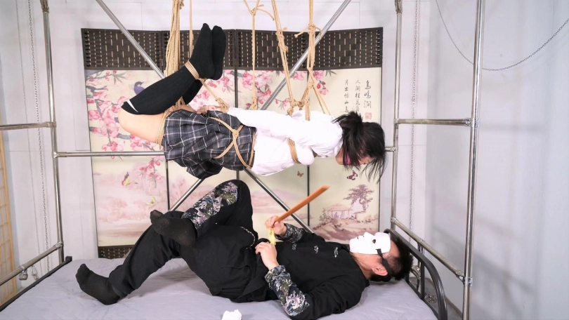 这个为所欲为床,也叫梦想之床,圆了一个小小的梦想,那就是睡觉时,平吊一个妹子,就是有个小麻烦,给她戴上口球,她的口水会止不住下流,本人用戒尺威胁她不准流,可是还是会流到你的脸上,诸位给出出主意吧。本次沐小雨也体现了专业绳模的素质,本来从从容容吊好了,本人手欠把腿搞了个驷马绑法,大腿上的两根绳子一直别着她的小腿,她其实一直在忍着完成了拍摄,在最后的放置阶段,在下面其实是可以感受到她承受的压力