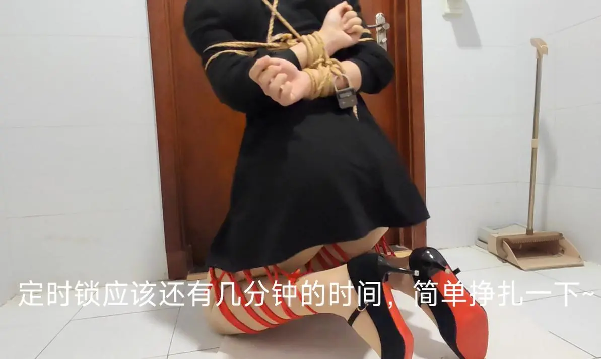 日式自缚和折腿缚已经试过几次了,实属简单有效而且美观,如果定时锁没有打开的话是没法解开套在手腕上的活结进而解开绳子的,所以在定时锁的时间到来之前尽情挣扎是唯一的选择~