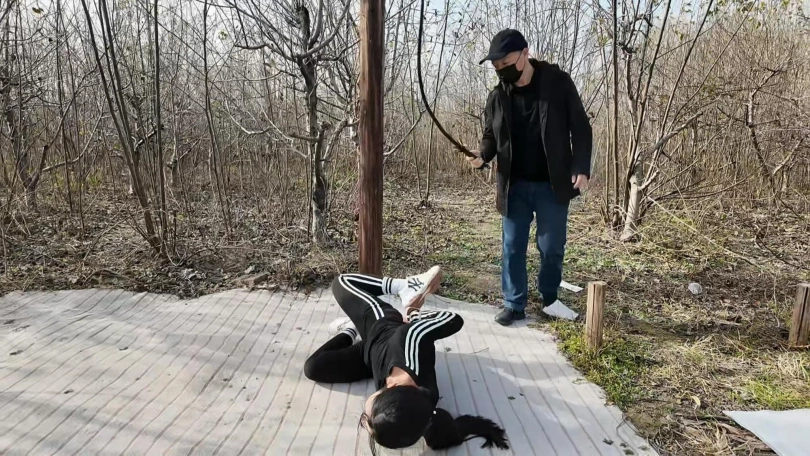 晨跑的十一一不留神跑到了一片小树林,结果被人绑架,绑好在地上被鞭子狂抽,又被吊到树上打屁股,这还不够,又绑到树桩上,用棒棒玩弄,一直到完全失禁....大量的鸟液喷涌而出
