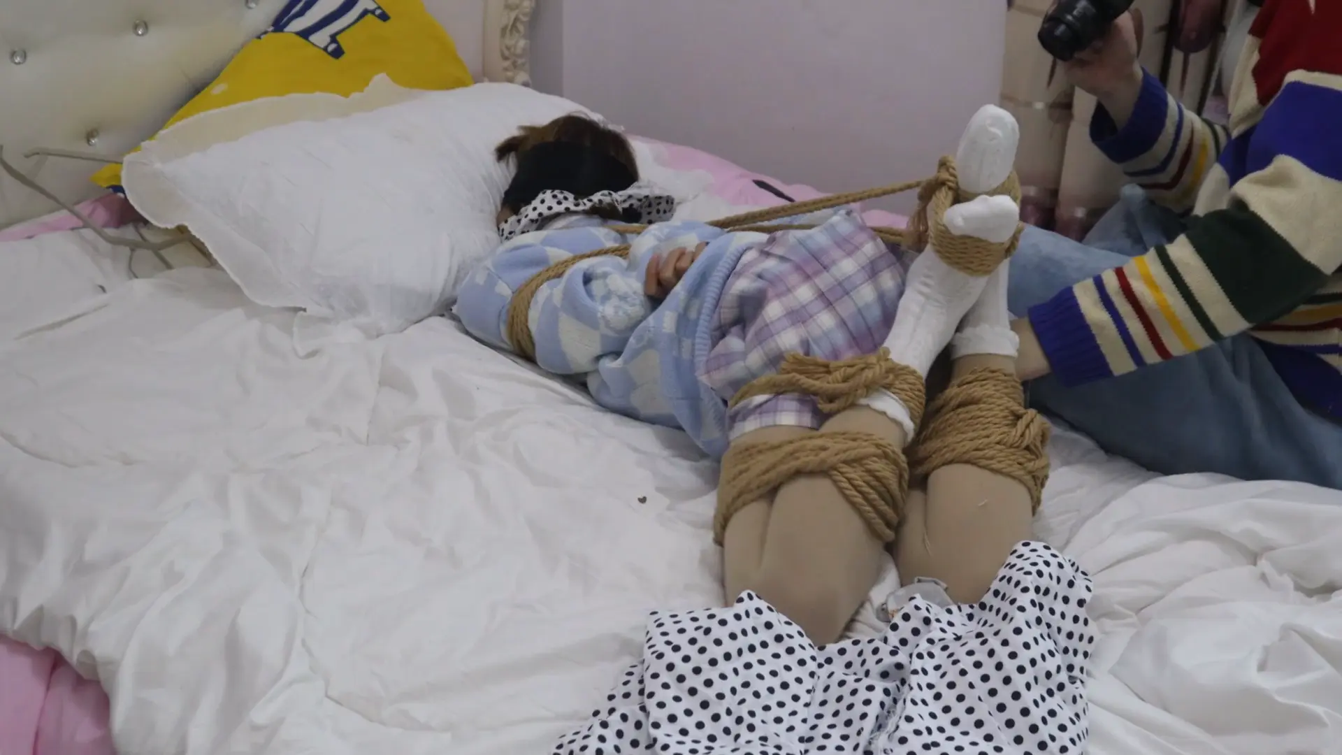 橙毛短发学生妹超短裙的两种受虐绑姿,小小的身体不停的被骚扰肉丝+蕾丝花边袜本本拼命疯狂挣扎呜咽,但敏感的身体一直遭受咸猪手的乱摸与揩油,后面直接急哭了