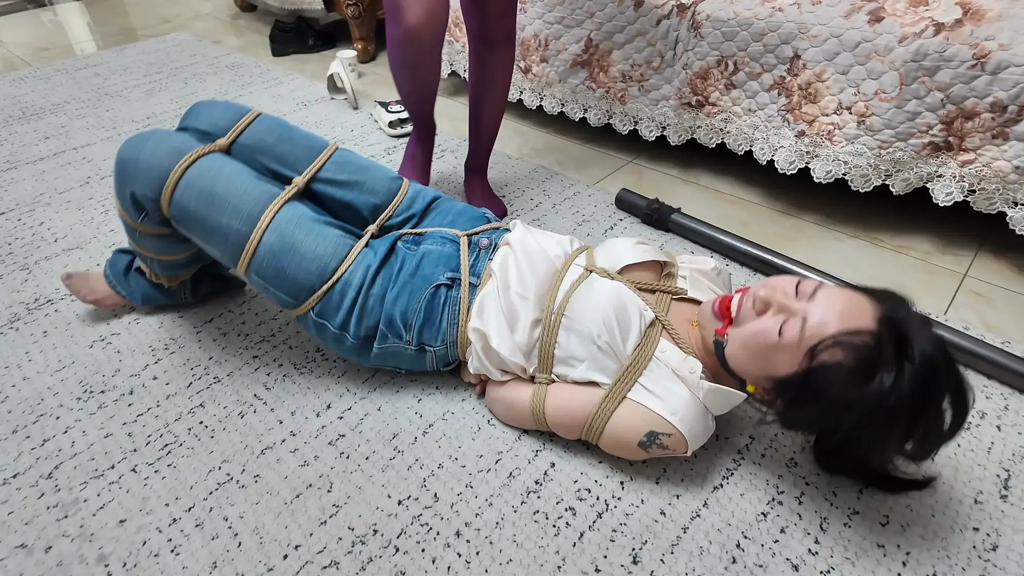 出轨的渣男丈夫沉沦美色,每日在自己的家中与老婆的闺蜜小米缠绵,半个多月过去,小米发消息告诉丈夫自己还有一周回来,丈夫为了保险起见,让小雯不要继续住在家中,谁知小雯竟为此吃醋发小脾气,作为小三渣男丈夫自然也是懒得应付,随便找了个理由便出门了,并告知小雯尽快收拾东西离开,发现闺蜜丈夫只是看上自己美色的小雯气急败坏,偶然看到闺蜜小米的睡衣,便穿在身上在镜子前端详自己。这时小米已经来到家门口,原来她为了给丈夫一个惊喜所以骗他自己还有一周才会回家,进了家门后小米呼喊丈夫,被浴室中的小雯听到,小雯不仅没有慌张反而是对着自己的手机坏笑了起来,她走出门叫住了小米,小米质问小雯为什么穿着自己的睡衣,小雯一阵嘲讽后亮出了手机中偷情的照片,小米一气之下与小雯扭打起来,最终小米不敌小雯被掐晕,醒来后自己已经被小雯单腿吊缚。