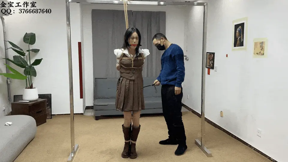 本片的情节来自于一个神奇的志怪故事,不过显然不舍得让漂亮的女匪小姐化为厉鬼,而是尽情展现她在新婚之夜受到的蹂躏。上集主要展现英姿飒爽的女匪小姐落难被擒、绳捆索绑(桌缚、五花大绑椅缚、半吊、丝袜口球堵嘴口水、脱靴挠丝袜脚)的情节,模特服装造型受到怀旧影苑等老片中女匪形象启发,瓜子脸筷子腿的木子梳起马尾辫,配上老板娘【Q:3766687640】精心购置的马甲衬衫、短裙骑士靴、超薄肉丝,显得英气十足,被缚后的手脚宛如捆在一起的花枝,细弱柔软却充满韧性,柔弱无助却极力反抗——看似扁平的躯干则在紧缚之下凹凸有致。至于剧照中的红色旗袍婚服,似乎预示着下集中她凄美的结局……