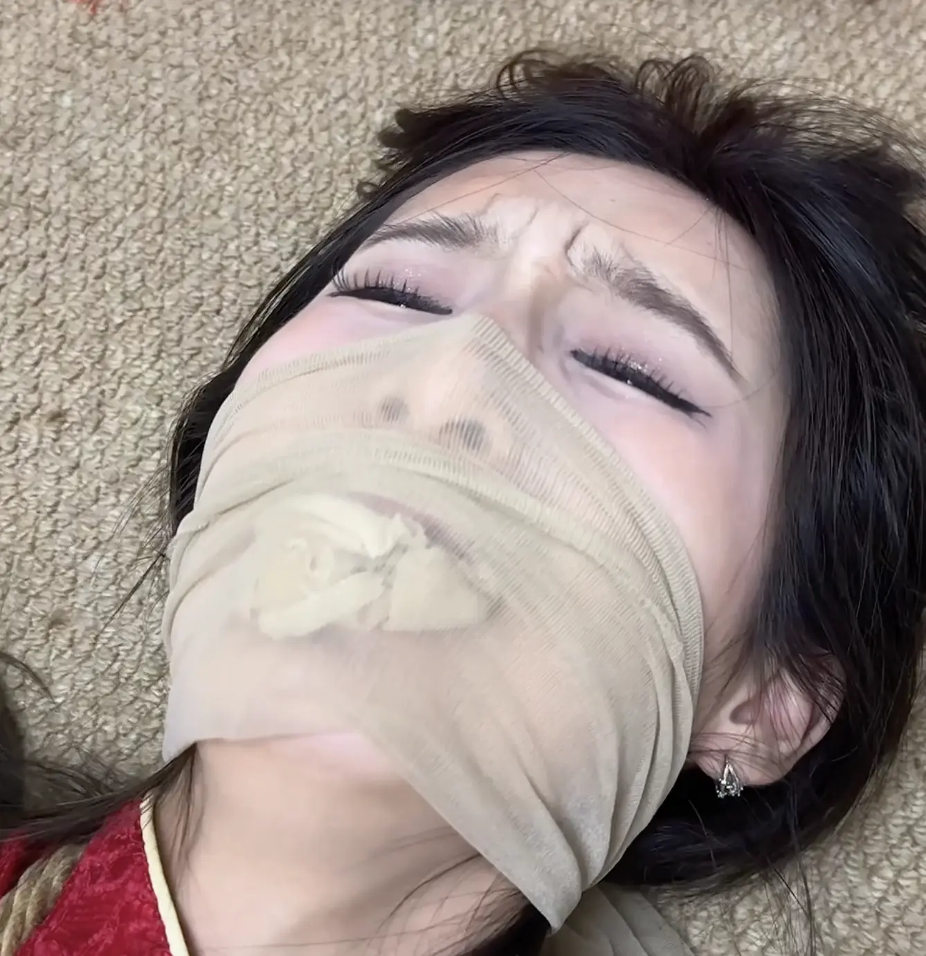 木子姑娘的装束更加轻薄显身材,奋力挣扎的玉臂和乱蹬的筷子腿让人欲罢不能,在与铁架、五花、驷马、股绳、口球的缠斗中汗水、泪水、口水横流,让人怜爱。男演老师经验丰富,不仅绑法过硬而且完美还原了二叔的奸诈与痞气。