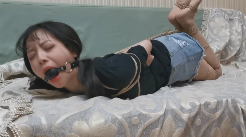 第二幕:逐渐珊珊醒了过来,一整懵逼,正在想怎么回事的时候,突然发现自己已经被绳子紧紧捆绑起来。(画外音:天啦,这个公司这么高科技吗?这样就开始了?)。这时候,珊珊脑海里想起一整声音,(画外音:欢迎参加梦缚公司的产品体验活动,您现在体验的是,本公司的第一件新产品,梦缚麻绳和梦缚口球,为了保证体验的完整性,您被捆绑的方式是,日式后手驷马,口球佩戴过程中,可能会有口水流下来,让您感觉到不适。祝您体验顺利)。珊珊开始打量起自己来(画外音:日式后手驷马?这种捆绑方式可真是有效的测试方式呢,我被绑的像个粽子,手在后面也看不到,双腿…,双腿被绑了七八道的样子,绳子全部勒到肉里面了,幸好穿了丝袜,不然,皮肤肯定磨破。)珊珊开始挣扎起来,突然发现自己的脚被绑在身后,与背后的绳子连接了起来,刚想惊呼一声,发出的确实呜呜的声音,这才发现自己嘴里含着一颗口球。(画外音:这…把我的腿绑在后面,我怎么用力嘛,站都站不起来,我嘴里咬的就是口球嘛?天啦,好大一个,嘴里全是口水,真恶心。哎呀,先不管了,先把绳子解开再说吧,解开绳子。又双倍工资呢。)