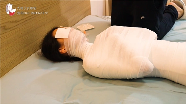 【九尾少女】小九尾绷带木乃伊多层全包初体验,白丝体操服,封闭双眼与听觉,多层绷带包头呼吸抑制,全包木乃伊封闭禁锢!