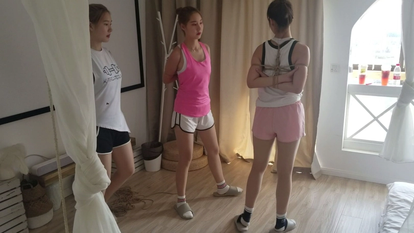 新约的妹子,三胞胎。运气贼好,哈哈。不知道拍啥,就玩了几个游戏。毛毛虫和互绑逃脱。