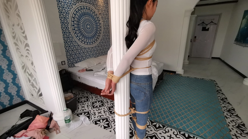 【JS】柱子缚 紧身牛仔裤 口球 挠痒挑逗