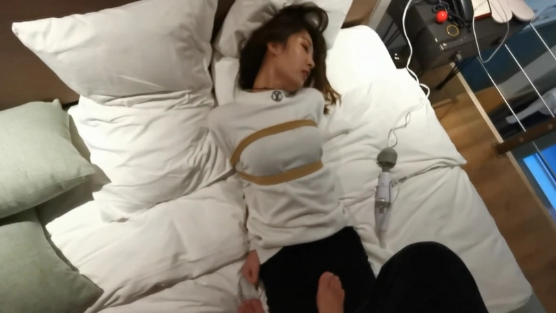 拿出个小Z棒塞进裤裆里,并脚踩住裤裆那强震,瑾萱刺激的紧闭双眼,双脚互相摩擦。。。
